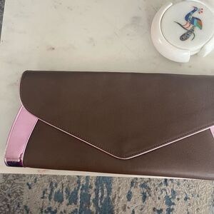 This stylish clutch features a sophisticated brown body with chic pink accents. Perfect for any occasion, it adds a touch of elegance to your ensemble.