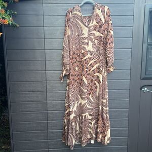 Elegant Brown Patterned Maxi Dress