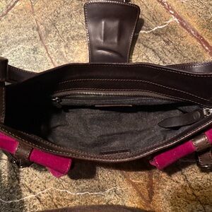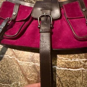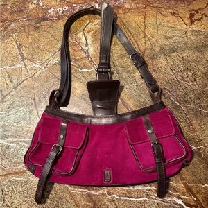 Elegant Burberry Burgundy Leather Trim Shoulder Bag