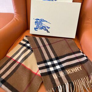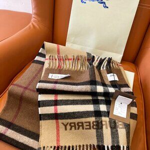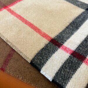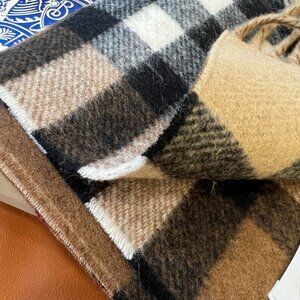 Drape yourself in the elegant Burberry camel check stole. It’s rich colors and classic design are perfect for adding a refined layer of warmth and sophistication to your look.