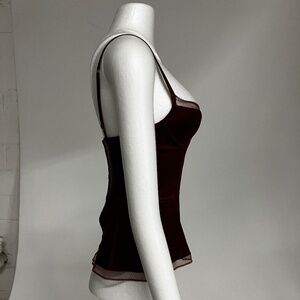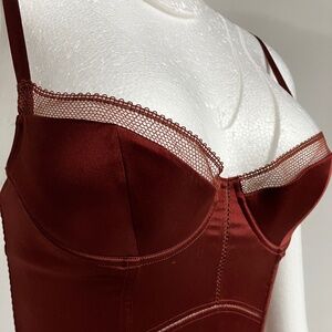 Stunning brand new with tags - Eres Paris Silk Burgundy Top with Built in bra/corset 32C. Made in France. Adjustable straps and back closure. Includes underwire and boning to fit perfectly and support.