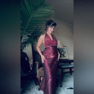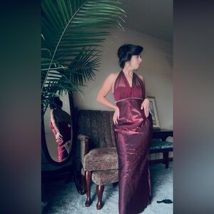 Stunning burgundy halter gown with a sleek silhouette. Perfect for formal occasions. In love with the bust you guys. Imagine this for a formal winter even with a faux fur coat… ughh gorgeous.