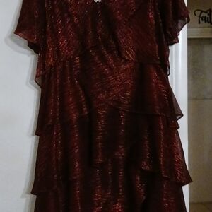 Chic burgundy dress with layered design. Perfect for special occasions.