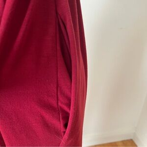 This elegant burgundy red off-shoulder flowy dress is perfect for any occasion. The rich cabernet maroon color and flowing design offer a sophisticated look. Small side slits. Comfy and has pockets!