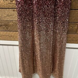 Elegant Burgundy & Rosegold Sequin Gown Size Small
