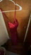 Stunning burgundy satin dress with spaghetti straps. Perfect for special occasions. Open back with cross tie.