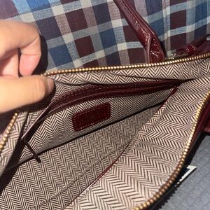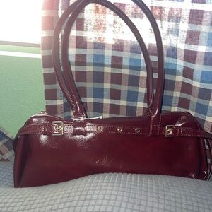 Urban Expressions Dark Red Faux Leather East West Bag with Gold Hardware belt and zipper. NWT.