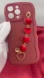Add a touch of romance and sophistication to your phone with this stunning burgundy case, adorned with a delicate chain of red hearts and a sleek silver heart charm. Perfect for those who love to combine style with functionality.