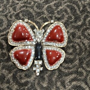 Elegant Butterfly Brooch with Red and Black Accents