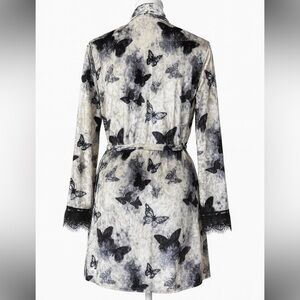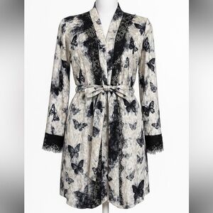 Wrap yourself in elegance with this butterfly print robe. Featuring a stylish black and cream design, this piece is perfect for lounging in comfort and style.