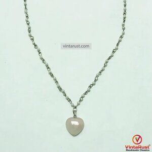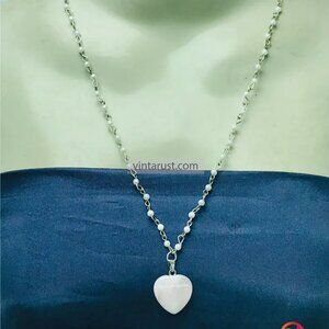 Elegant Calcite Stone Heart Pendant Necklace with Delicate Silver Chain