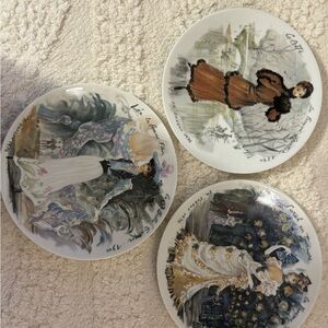 Discover the charm of these elegant ceramic art plates, featuring intricate historical designs in cream, brown, and blue. Perfect for adding a touch of sophistication to your home decor.