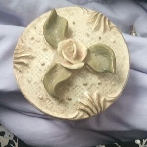 This elegant ceramic decorative box features a beautiful floral design. The cream and green colors add a touch of sophistication to any home decor.