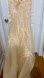 This elegant champagne wedding dress is a size 8 with no stretch. Never worn, brand new without tags. Has a small train, corsetted back with a privacy flap, tulle bottom overlay with lace appliqes, silk underlay, with the inside of the dress fully lined with padded cups. The dress design offers a timeless and sophisticated look your special day.