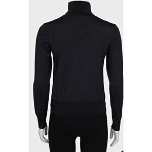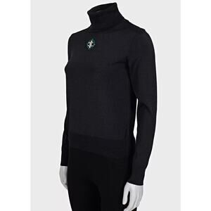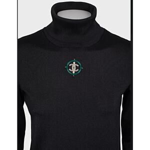 Elevate your wardrobe with this stunning Chanel black turtleneck sweater! This sophisticated piece features a slim silhouette and the iconic Chanel logo brooch at the neckline, adding a touch of luxury to any outfit. Perfect for layering or wearing on its own, this versatile sweater is a must-have for any fashion-conscious individual.