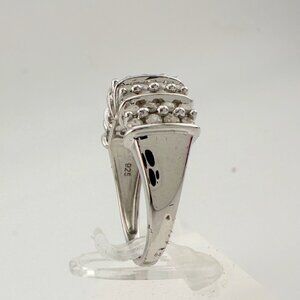 Alternating band then 2 rows (4 gems each row) of round diamonds ( 6 bands, 5 double rows of diamonds). 40 round natural (mined) diamonds. Sterling silver (.925) setting.