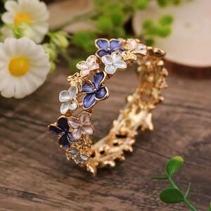 - Elegant & chic blue & pink enamel floral bracelet with a timeless design