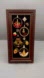 A one-of-a-kind vintage Christmas brooch shadowbox wall art created with permanently mounted holiday pins arranged in elegant gold ornament frames within a dramatic shadowbox display. This piece can be hung on the wall or displayed on a tabletop using the included holder.