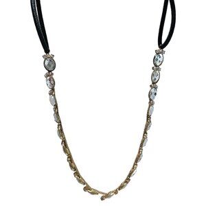 Enhance your style with this elegant necklace featuring a chunky crystal rhinestone design. The black cord adds a bold touch, perfect for any occasion.
