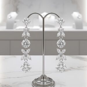 Bridal or Special Occasion or Formalwear Earrings. Drop Earring Style. Silver. Elegant, Classic, Timeless.