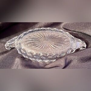 Elegant Clear Glass Serving Dish Crystal Fostoria American Cubist Handles VTG