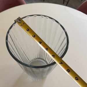 Beautiful clear glass vase with a ribbed design. Perfect for flowers or as a decorative piece.
