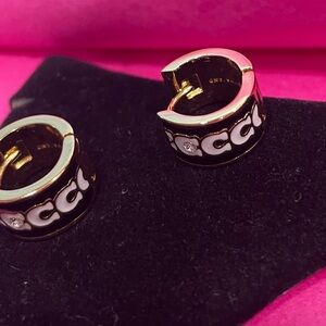 Elegant Coach Gold and Black with White Letter C’s Earrings New.Style Huggies