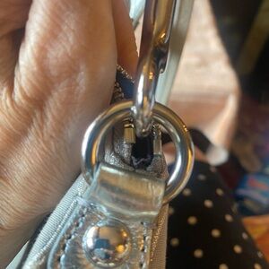 Elegant Coach Poppy Signature Lurex canvas Satchel crossbody, grey/beige/silver