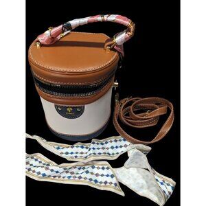 • Comes with faux leather crossbody strap, extra handle scarf, and dust bag