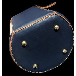 Elegant Colorblock Bucket Bag Cream Brown And Blue Faux Leather