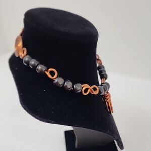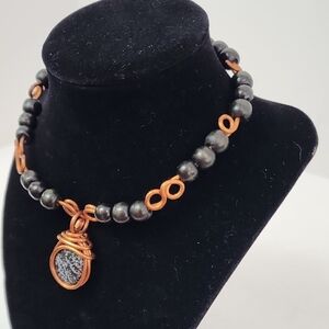 Elegant Copper and Silver Beaded Necklace Drop Stone