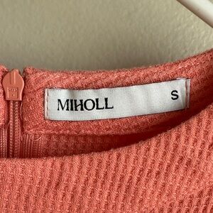 Elevate your wardrobe with this elegant coral blouse featuring delicate lace sleeves. Perfect for any occasion.