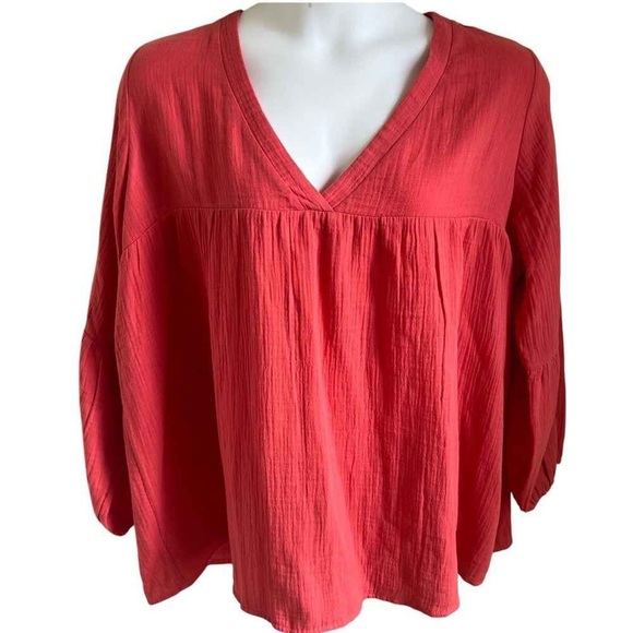 Add a touch of elegance to your wardrobe with this coral V-neck blouse. Perfect for both casual and formal settings.