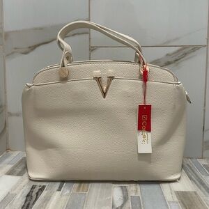 Elegant Cream Concorde Handbag pebbled faux leather purse