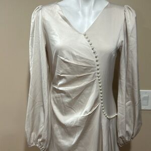 This elegant cream dress features a sophisticated design with button detailing. Perfect for any occasion, it offers a timeless look
