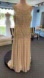 This elegant gold champagne gown features intricate embellishments, perfect for special occasions. Its timeless design offers a sophisticated look.
