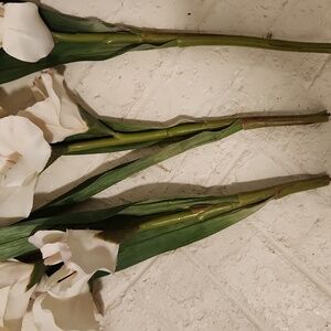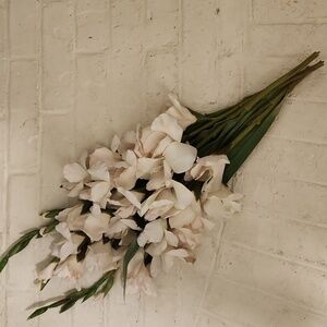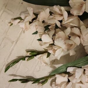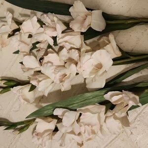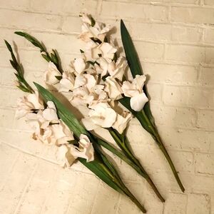 Enhance your home decor with these elegant cream faux gladiolus stems. Perfect for adding a touch of sophistication to any room. 27 inches 3 separate pieces. Beautiful flowers.