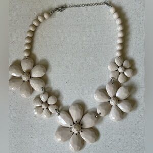 This elegant cream floral necklace adds a touch of sophistication to any outfit. Perfect for any occasion.