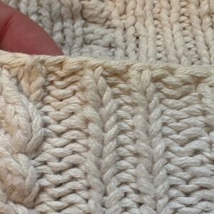 Multiple spots showing yarn pulling and holes. I’m sure can be easily fixed by someone that can crochet/knit
