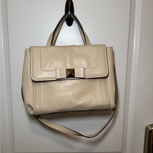 This elegant cream handbag is perfect for any occasion. Its stylish design and versatile color make it a must-have accessory.