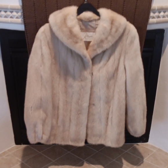 Luxurious cream Kluger Mink fur coat perfect for adding elegance to any outfit. Soft and warm, ideal for chilly days.