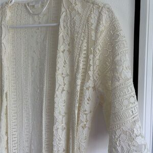 Indulge in luxury with this elegant cream lace robe. Perfect for lounging or adding a touch of sophistication to your sleepwear collection.