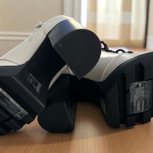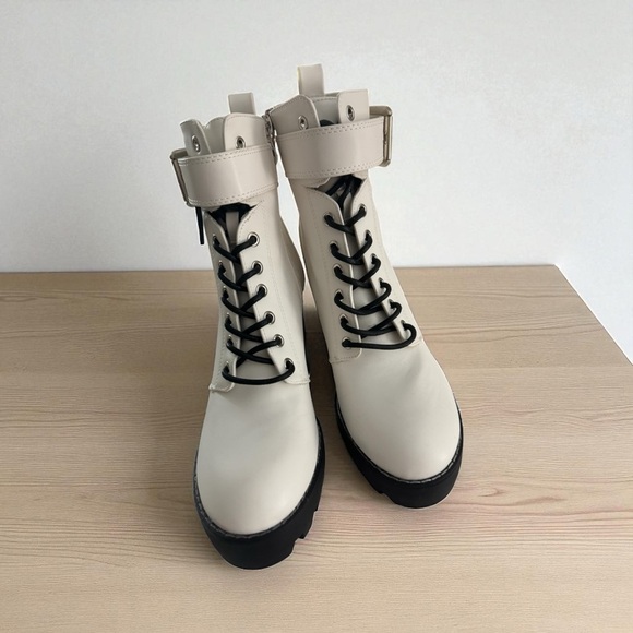 Step out in style with these elegant cream lace-up combat boots. Designed for comfort and durability, they are perfect for any adventure.