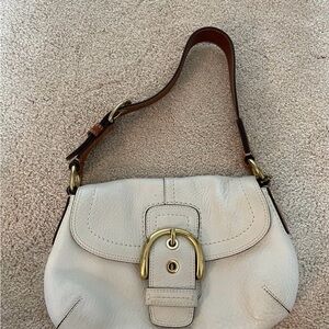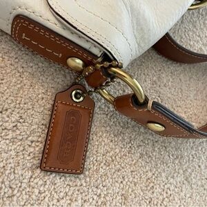 This elegant cream leather shoulder bag is perfect for any occasion. Its sleek design and high-quality material make it a must-have accessory. Coach bag in good condition does have outside staining inside is in great condition. Open to offers