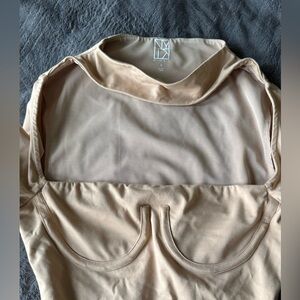 This elegant cream long sleeve bodysuit offers a chic and sophisticated look. Perfect for any occasion, it combines style and comfort effortlessly.