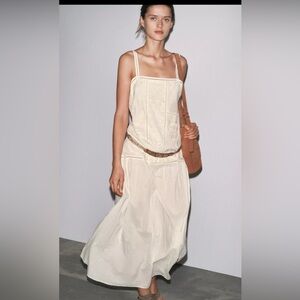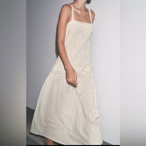 🔥🔥Zara cream maxi dress with delicate straps. Perfect for a chic look.