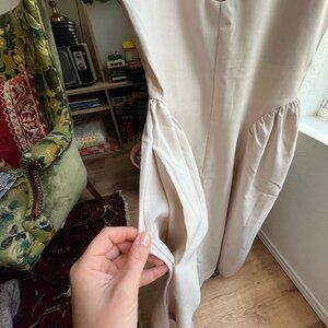 Step out in style with this elegant cream midi dress. Perfect for any occasion, this dress offers a flattering fit and timeless design.