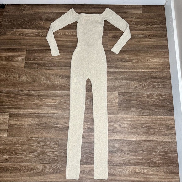 Step out in style with this elegant cream off-shoulder jumpsuit. Perfect for any occasion, it offers a sleek and sophisticated look. The soft fabric ensures comfort while the fitted design enhances your silhouette.