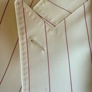 Elevate your style with this elegant cream pinstripe 2 pcs suit . Perfect for any formal occasion, this blazer offers a sophisticated look with its classic design. Perfect for summer, Mr. suits is my brand.