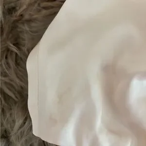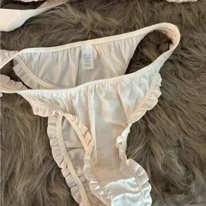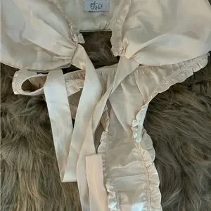 Chic cream panty set with ruffle details. Soft fabric for comfort. Stylish and elegant design.